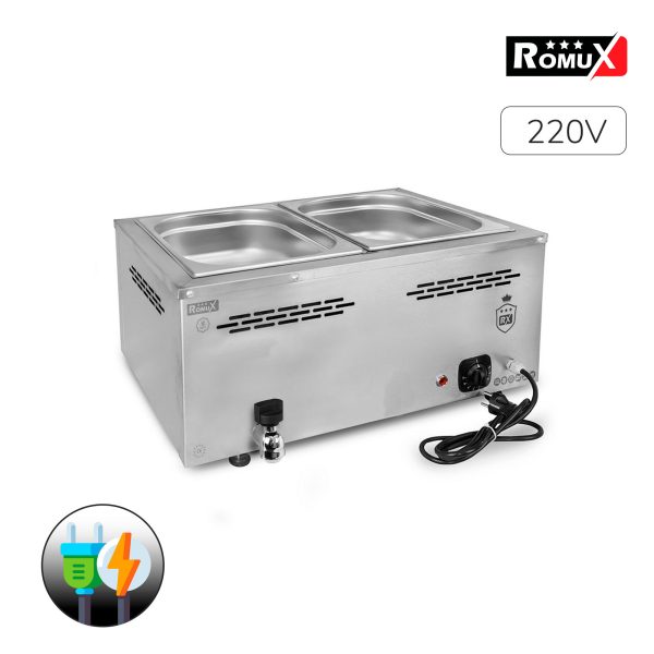 🥇ROMUX®🚀 BAÑO MARÍA 2 CUBAS DE 1/1 GN SOBREMESA CON GRIFO
