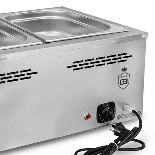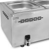 Este baño maría para hostelería de 2 cubas de 1/1 GN está diseñada para sobrellevar un uso continuo y profesional. En concreto este baño maría industrial es ideal para bares, restaurantes y catering.