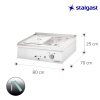 ✏️ 【CARACTERÍSTICAS】 📏 Dimensiones: 800 (Ancho) x 700 (Fondo) x 250 (Alto) mm. 📍Potencia: 1,6 kW. 📍Número de Cubas:1 📍Tipo de Cuba: 1/1 GN 📍Energía: Eléctrico. 📍Voltaje: 230 V.