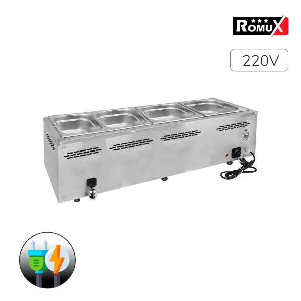 🥇ROMUX®🚀 BAÑO MARÍA 4 CUBAS DE 1/1 GN SOBREMESA CON GRIFO
