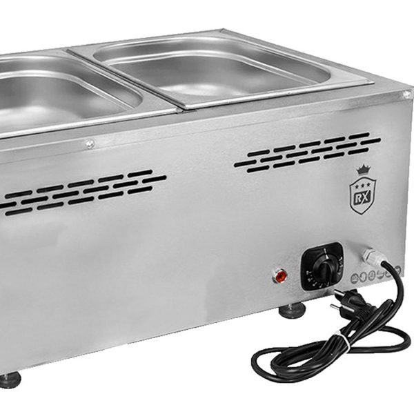 Este baño maría para hostelería de 4 cubas de 1/1 GN está diseñada para sobrellevar un uso continuo y profesional. En concreto este baño maría industrial es ideal para bares, restaurantes y catering.