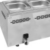 Este baño maría para hostelería de 4 cubas de ½ GN está diseñada para sobrellevar un uso continuo y profesional. En concreto este baño maría industrial es ideal para bares, restaurantes y catering.