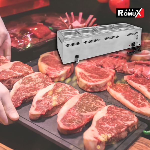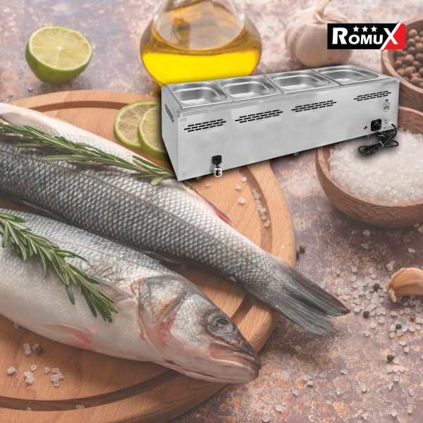 🥇ROMUX®🚀 BAÑO MARÍA 4 CUBAS DE 1/2 GN SOBREMESA CON GRIFO