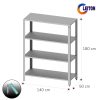 Esta estantería de acero inoxidable para hostelería de pie con 4 estantes 1400x500x1800 mm desmontable está diseñada para sobrellevar un uso continuo y profesional. En concreto esta estantería de acero inoxidable es ideal para bares, restaurantes y catering.