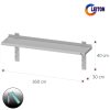 Este estante para hostelería único ajustable 1600x300x400 mm desmontable está diseñado para sobrellevar un uso continuo y profesional. En concreto este estante de acero inoxidable industrial es ideal para bares, restaurantes y catering.