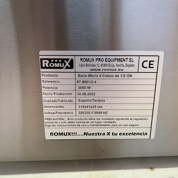 Sin embargo, este no es un problema al comprar el baño maría industrial profesional de 4 cubas de ½ GN Romux. Gracias a la profesionalidad que proporciona la marca de fabricación europea el éxito está asegurado al comprar el baño maría industrial profesional de 4 cubas de ½ GN Romux.