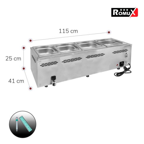 🥇ROMUX®🚀 BAÑO MARÍA 4 CUBAS DE 1/2 GN SOBREMESA CON GRIFO
